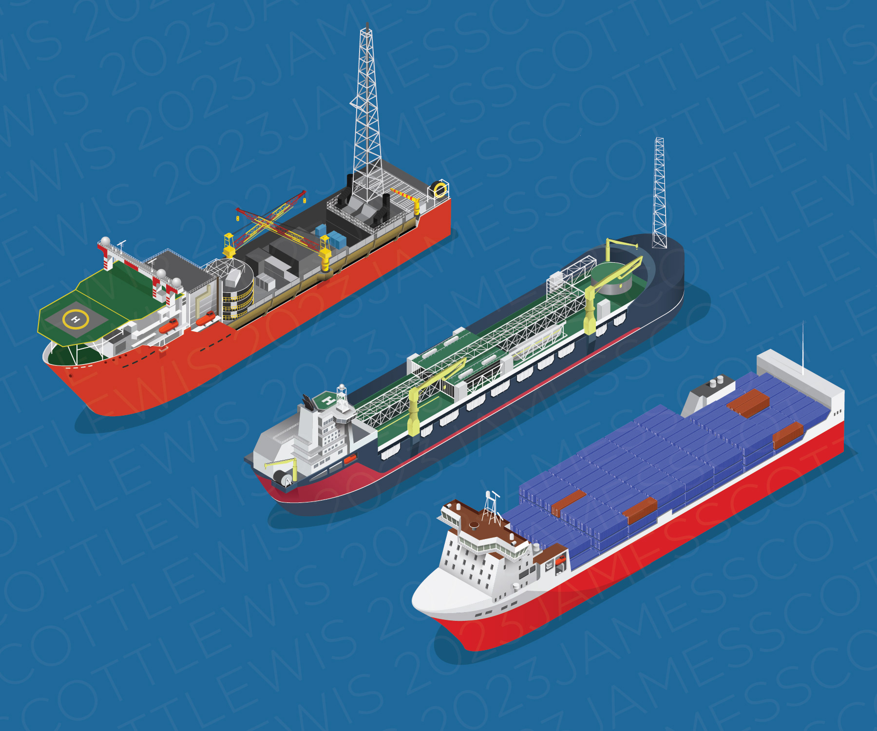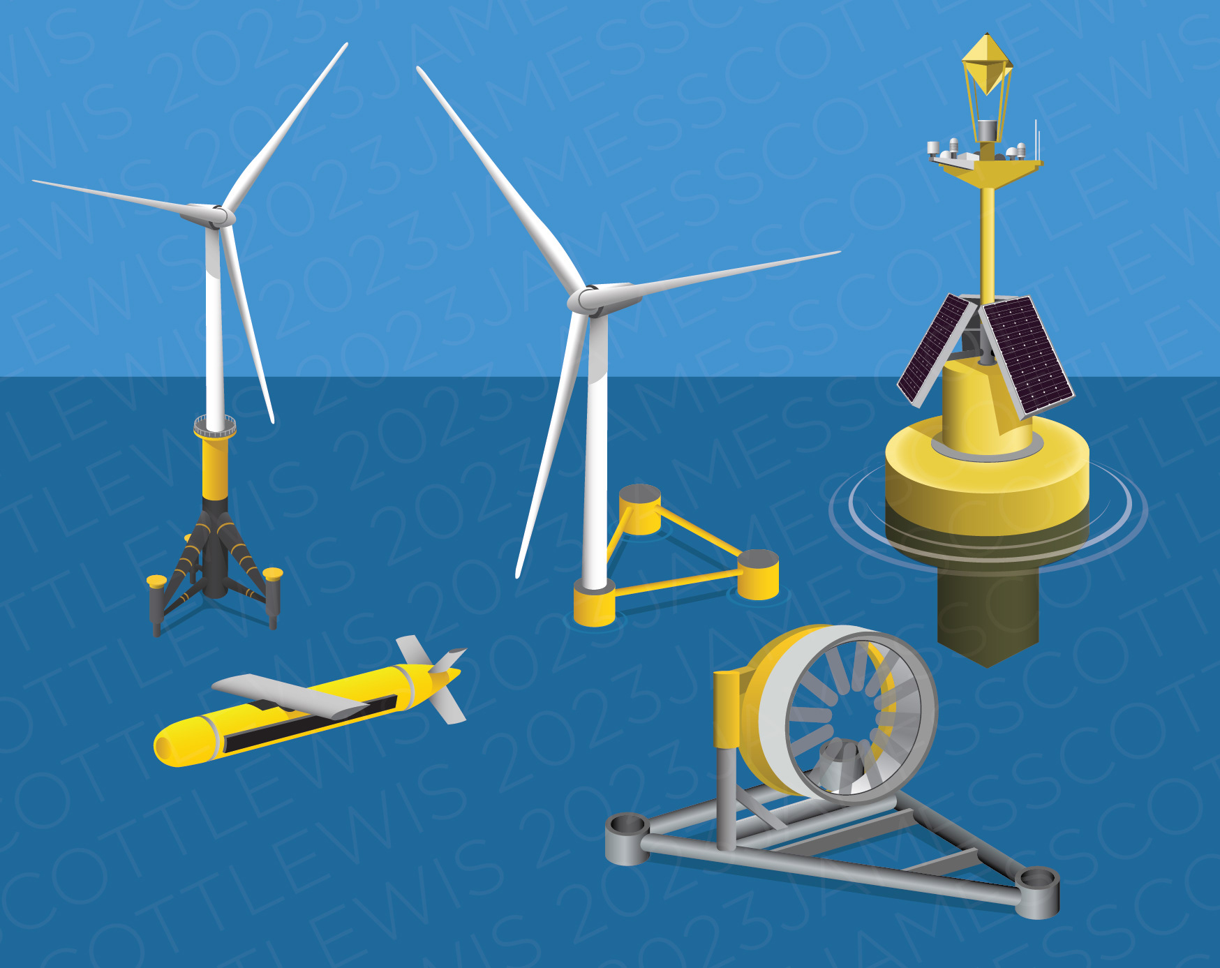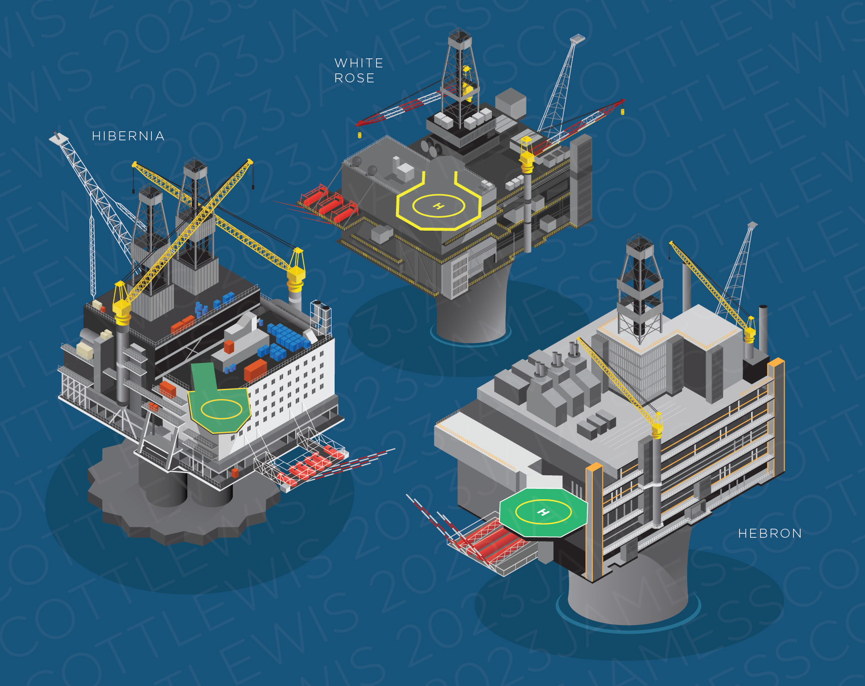 Infographic illustrations of some ocean-based technologies, industries and activities around Newfoundland and Labrador.