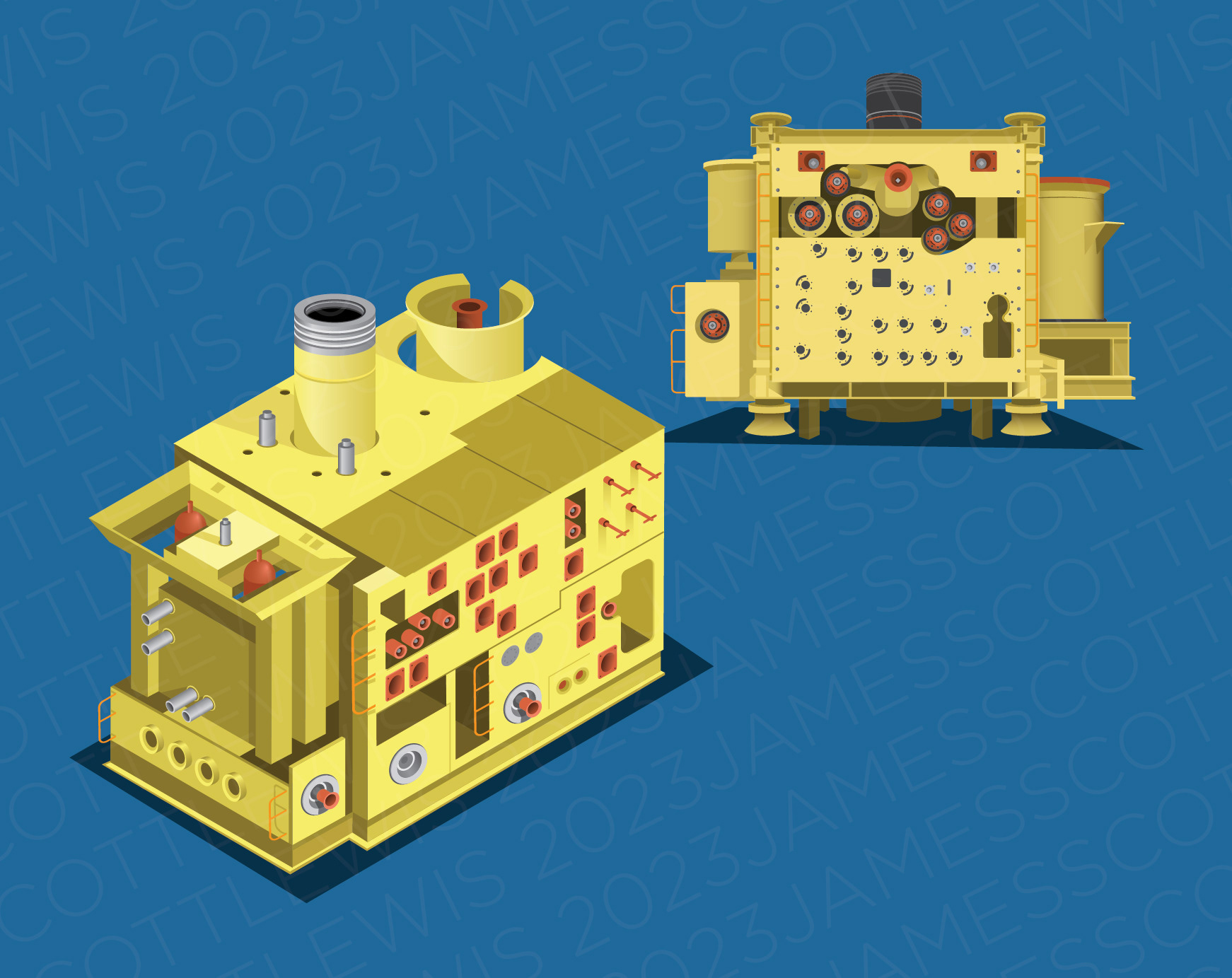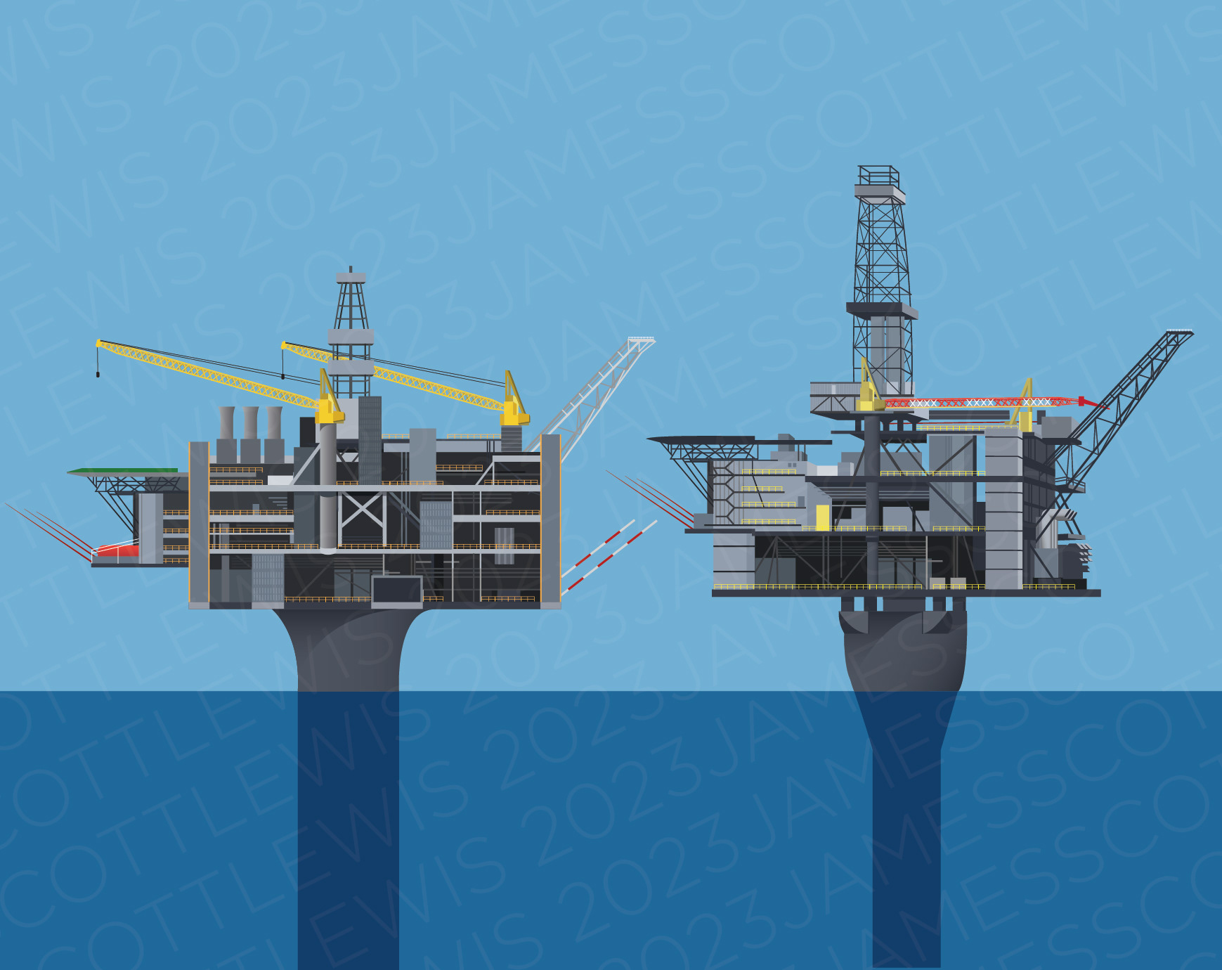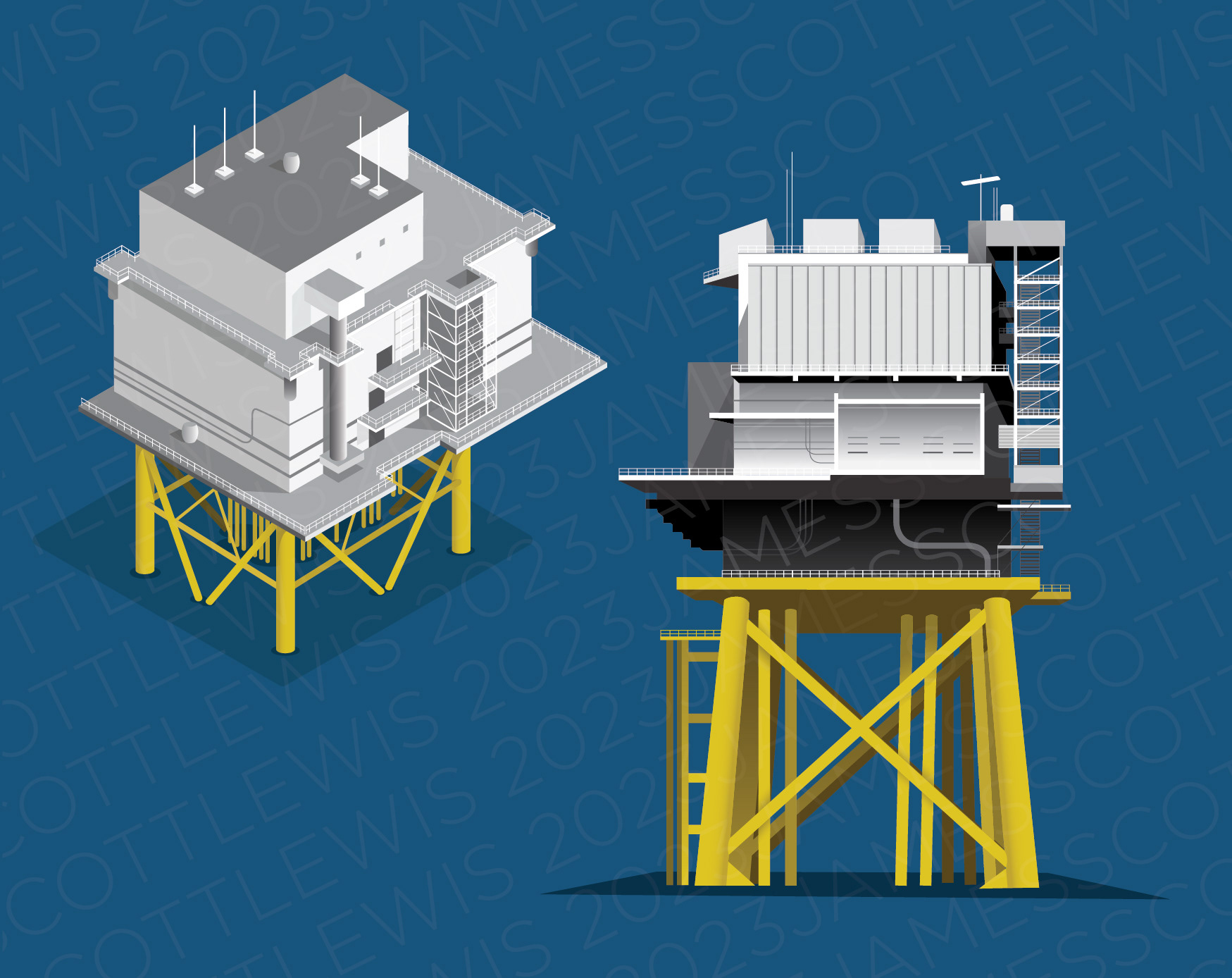 Infographic illustrations of some ocean-based technologies, industries and activities around Newfoundland and Labrador.
